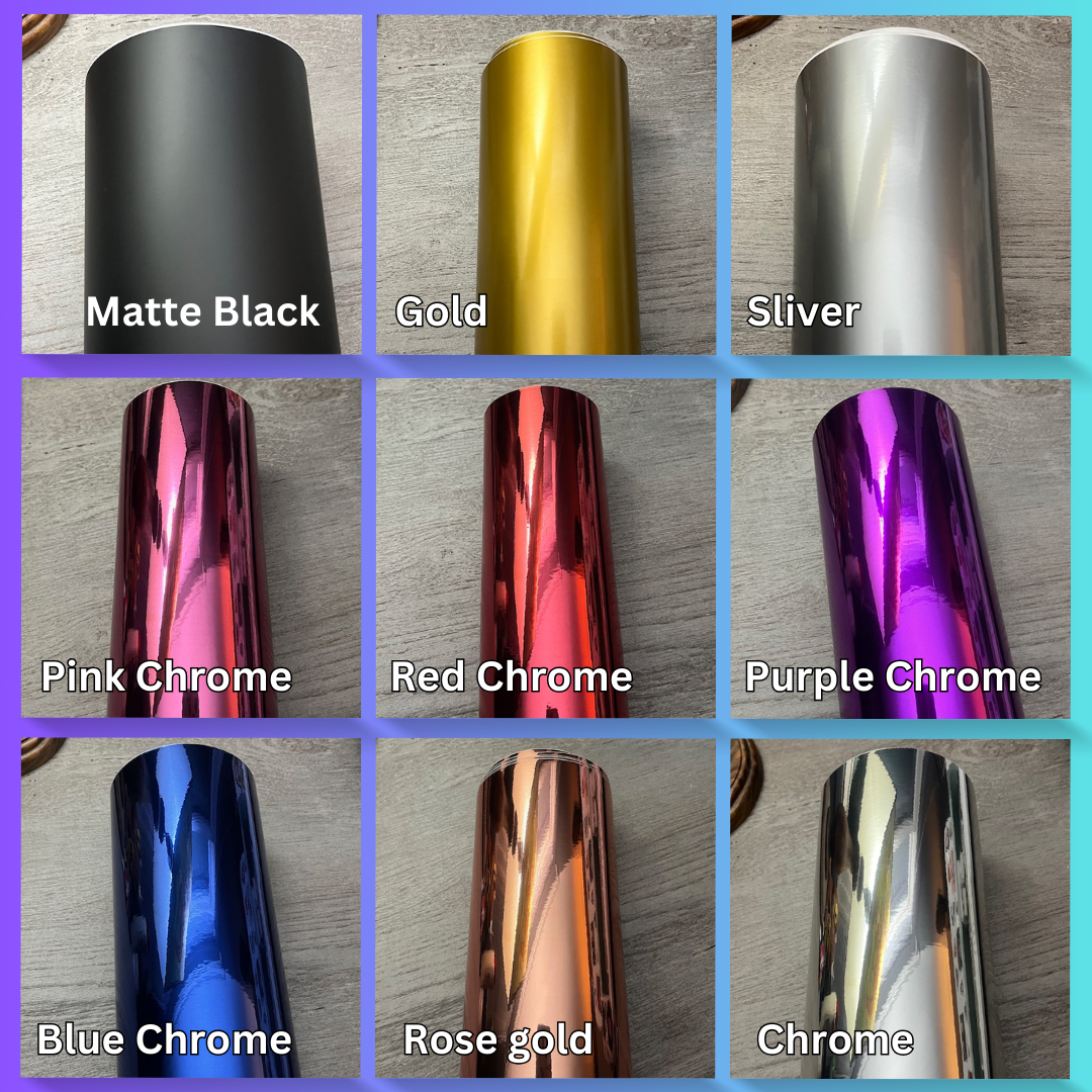 Gold, Silver, Pink Chrome, Red Chrome, Purple Chrome, Blue Chrome, Rose Gold, Chrome, Gold Chrome, Black Chrome